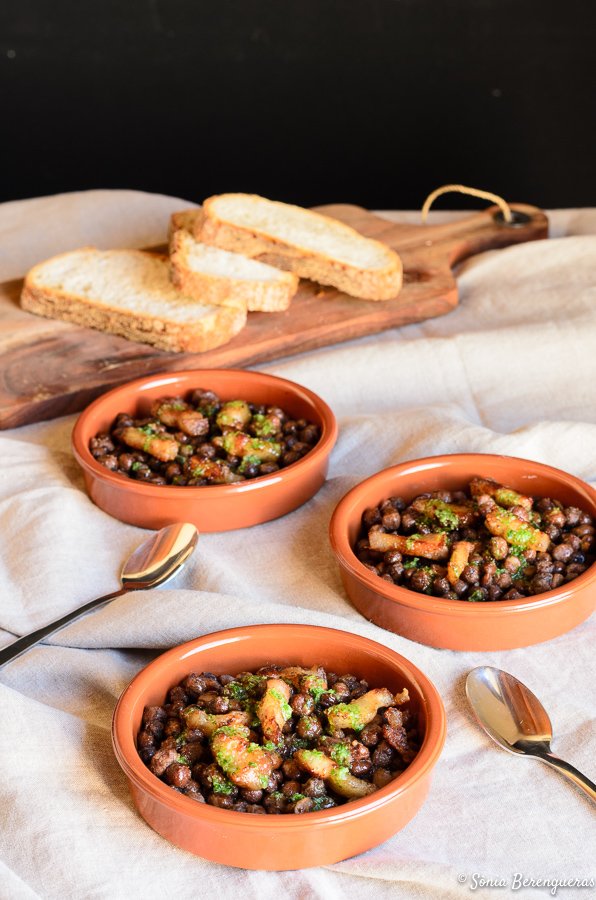 Hoy para comer he preparado los guisantes negros de la forma que nos explicó Anna, con cansalada del coll y una picada de ajo y perejil. Buenísimos!