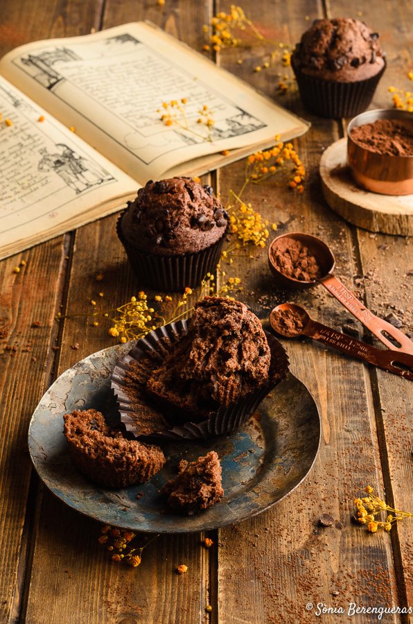Con estas magdalenas de chocolate y nueces pecanas, los que sois adictos al chocolate tendréis un desayuno o merienda de vicio!