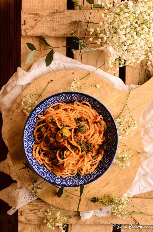 Espaguetis amb verdures